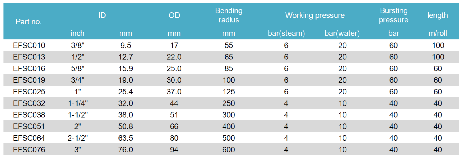 可輸送牛奶,果汁,飲料,葡萄酒,食用油,飲用水等食品。同時可用於輸送熱水和蒸氣,適用於多種工作場合的沖洗清潔應用。